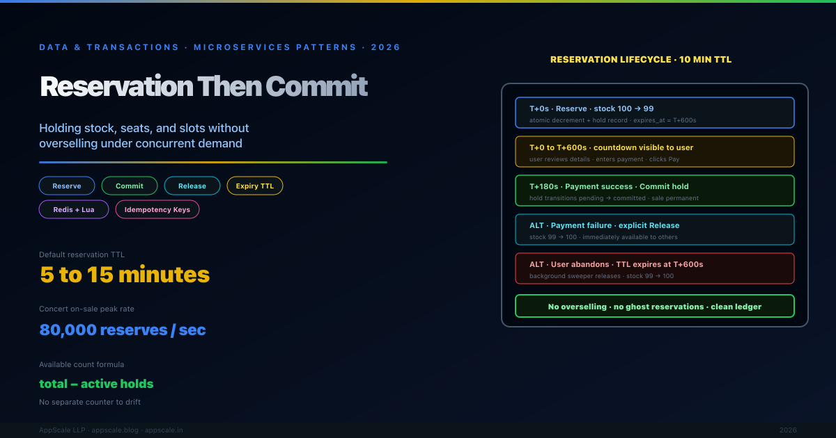 The Reservation Then Commit Pattern: Holding Stock, Seats, and Slots Without Overselling Under Concurrent Demand (2026)