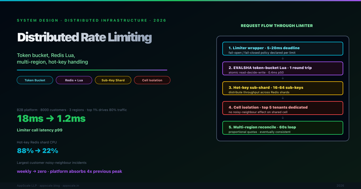 Distributed Rate Limiting at Scale: Token Bucket, Redis, and Multi-Region Coordination Without Hot-Key Disasters (2026)