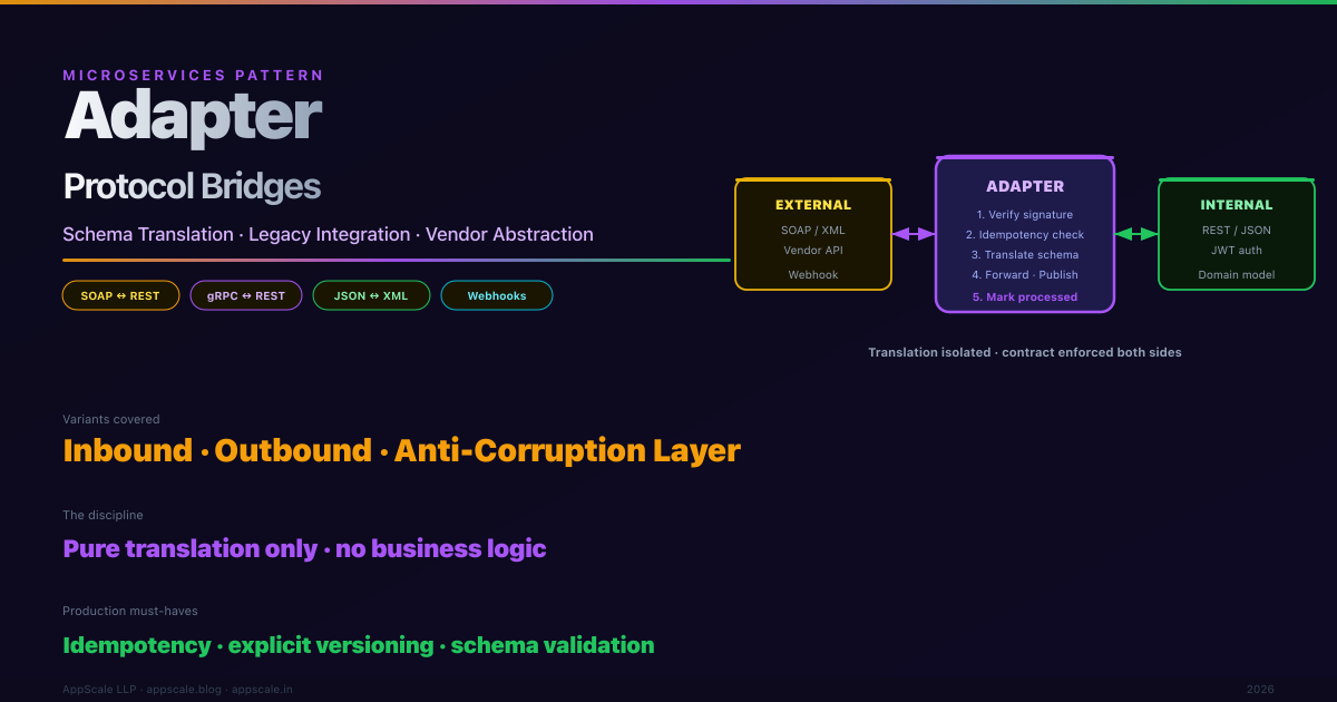 Adapter Pattern in Microservices: Protocol Bridges and Legacy Integration (2026)